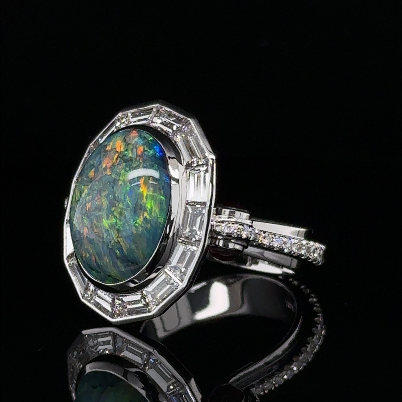 Number of Diamonds: 203 | Shape: OvalOccasion: Engagement | Main Stone Width: 8.8 mmMain Stone Color: Green | Metal: White GoldSecondary Stone: Diamond Natural 0.97 ct.Main Stone: Emerald | Ring Size: 6.75Main Stone Treatment: Natural | Main Stone Shape: OvalStyle: Dome | Base Metal: White GoldGemstone Clarity Grade: Eye CleanNumber of Gemstones: 1 | Handmade: YesMain Stone Creation: Natural | Seller Warranty: YesSigned: Yes | Color: Green | Cut Grade: ExcellentSizable: Yes | Material: GemstoneTotal Carat Weight: 5.08 | Modified Item: NoDiamond Clarity Grade: Very Slightly Included (VS1)Setting Style: Pavé | Type: Ring | Metal Purity: 18kMain Stone Depth: 7.5 mm | Diamond Color Grade: FBand Width: 20.35mm | Model: Alex Nazar | Theme: NatureCollection: Alex Nazar | Main Stone Length: 12.1 mmCountry/Region of Manufacture: United StatesCountry of Origin: United States | Wholesale: YesUPC: Does not apply -