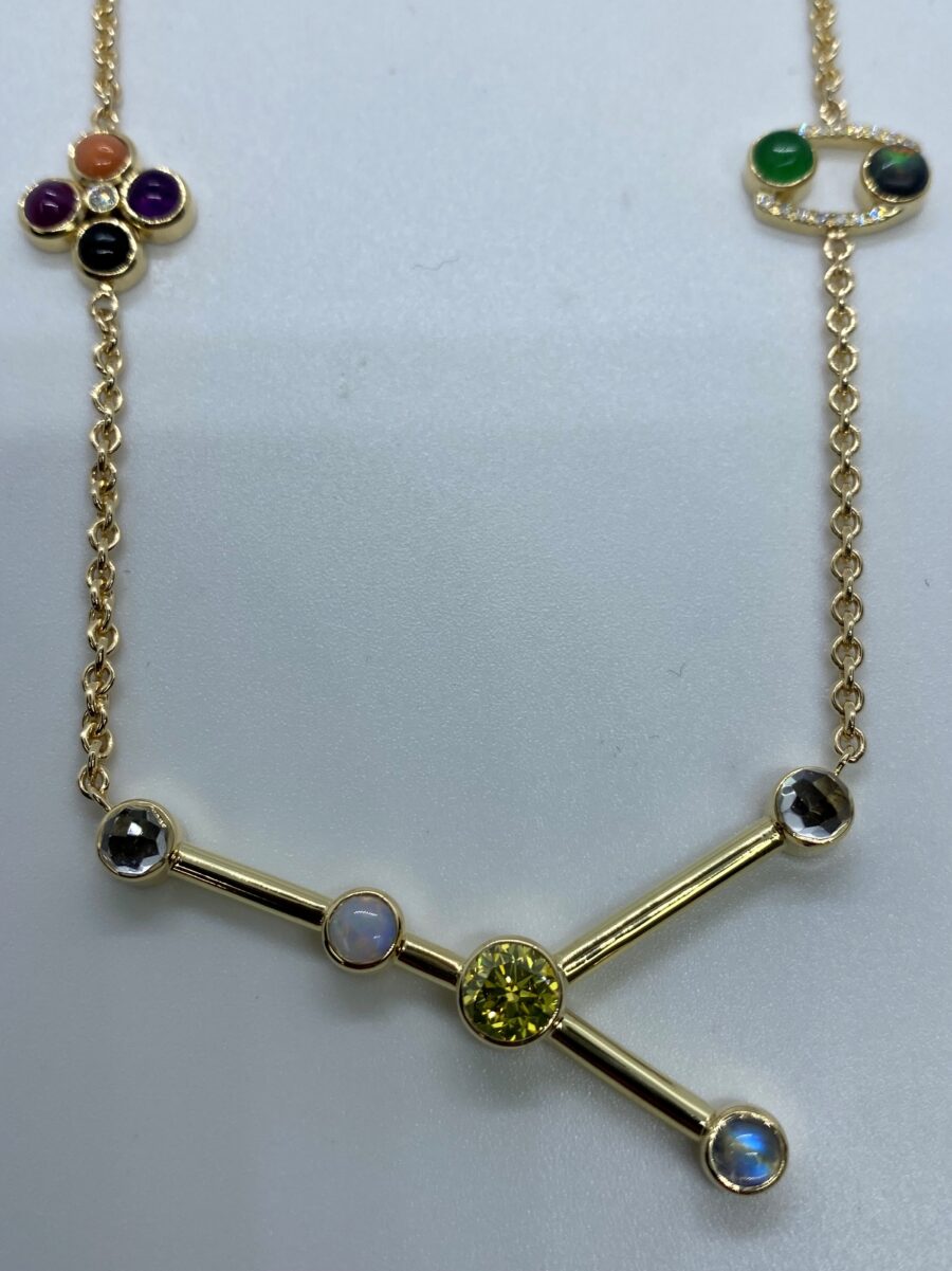 yellow gold with diamonds and color stones